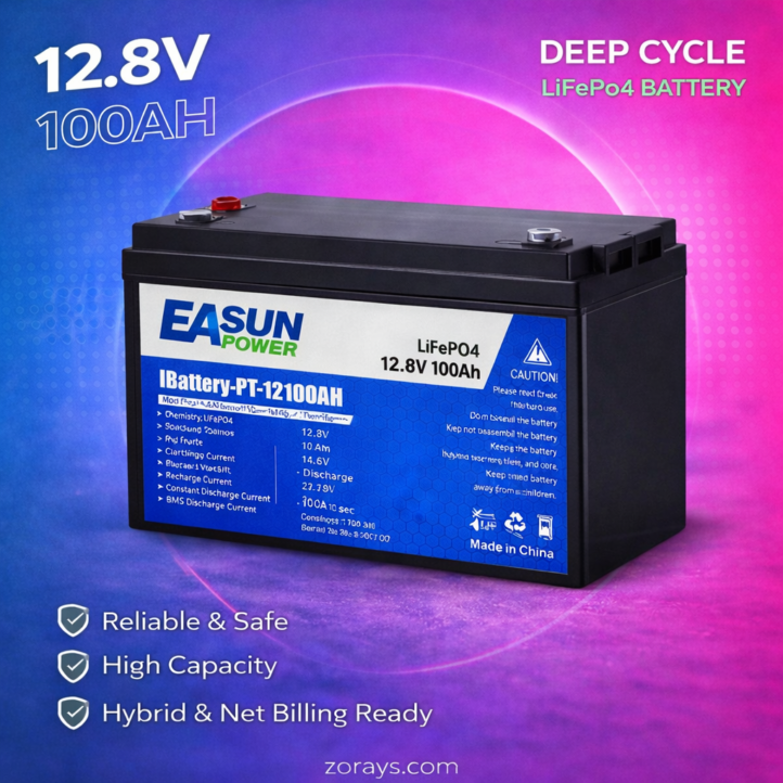 Unlock practical, reliable energy storage with the EASun Power 12.8V 100Ah LiFePO4 Lithium Battery — a compact yet powerful solution engineered for small-scale solar systems, backup applications, and mobile energy needs.