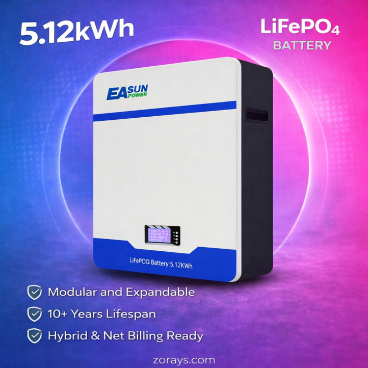 In Pakistan’s shifting solar policy landscape—where net billing, self-consumption, and peak shaving are becoming critical—this 5.12kWh unit is not just a battery, it is a control mechanism. Whether you are reducing reliance on the grid, managing rising tariffs, or building a scalable energy system, the EASun 5.12kWh battery delivers consistent, dependable performance.